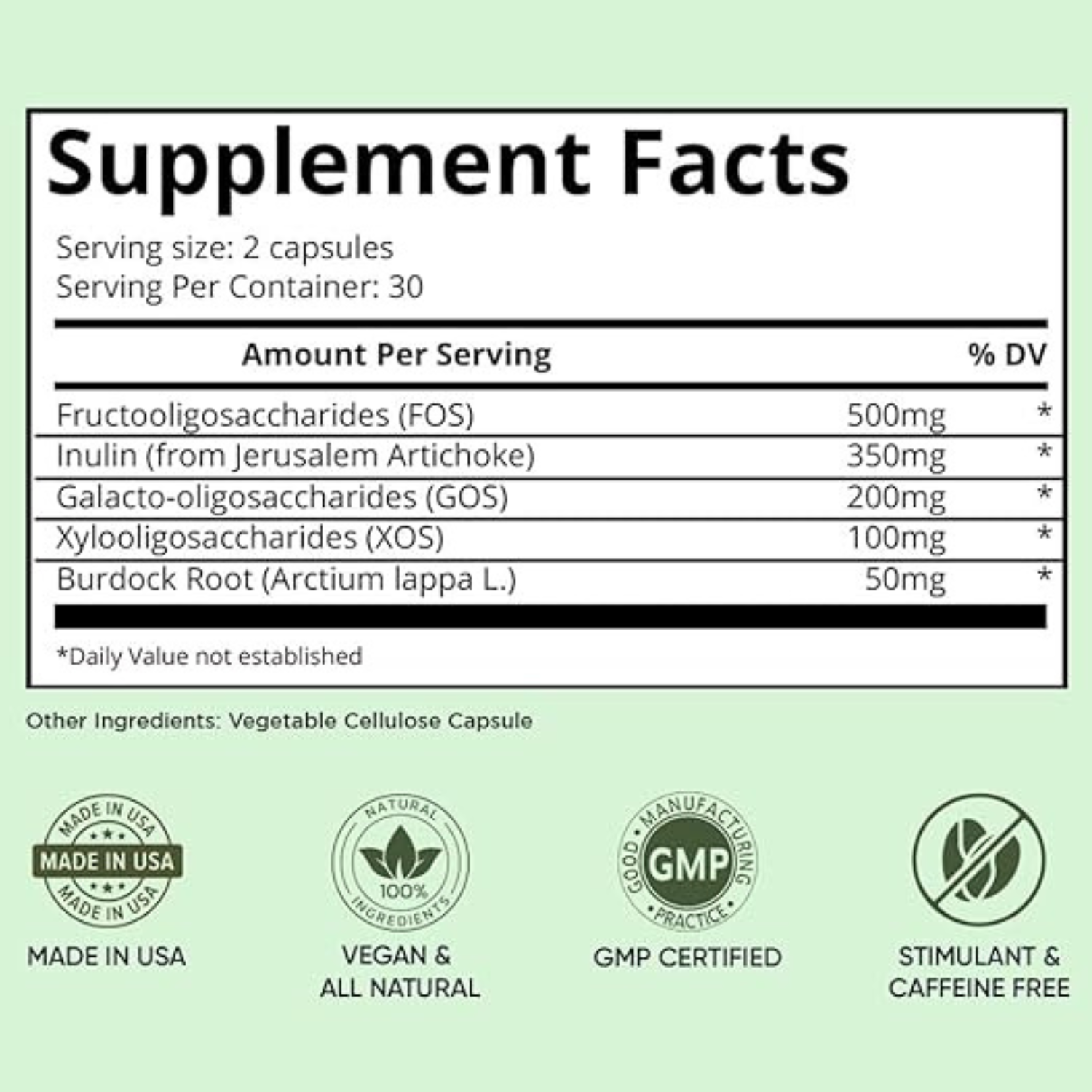 Take 2 capsules daily with water, preferably before meals. Each bottle provides a 30-day supply for consistent digestive and gut support.